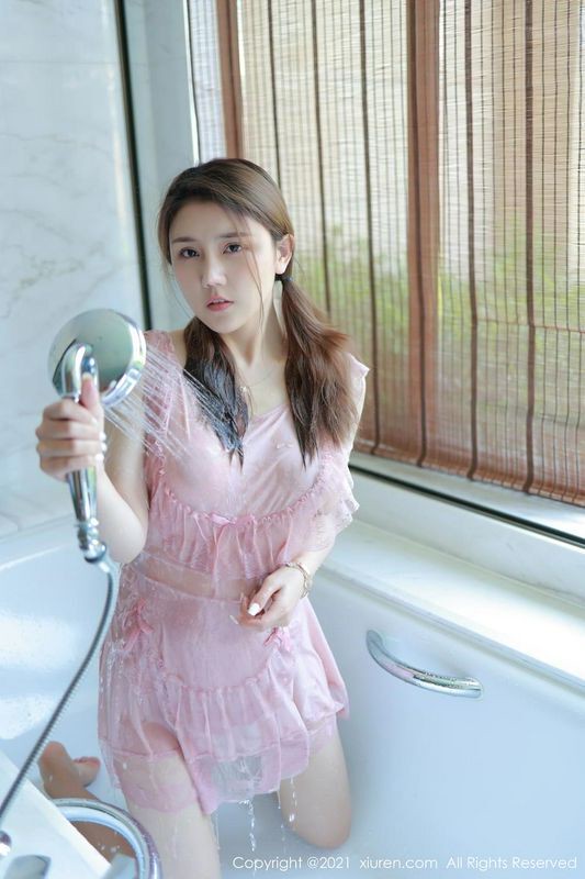 双马尾女孩夏西CiCi粉色女仆浴室湿身